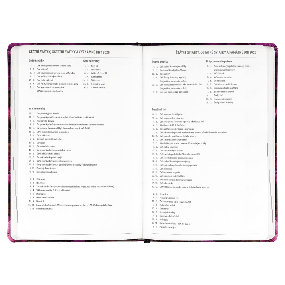 Kalendárium: týždenné 18 mesačné 2 jazyčné (CZ, SK)