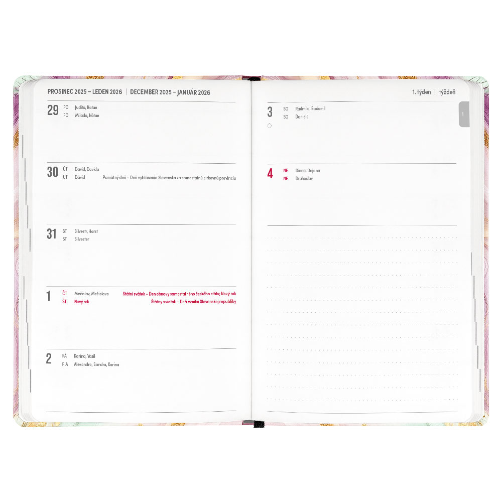 18-mesačný diár Petito - Ružová Mramor 2025/2026