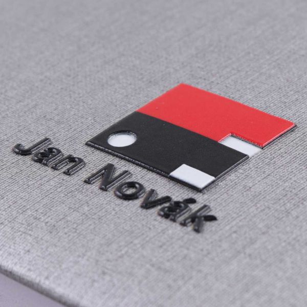 Tisk 3D loga na diář. Tato nová metoda brandingu umožňuje prostorové zviditelnění Vašeho loga. Nejvhodnější je tisknout logo do výšky 0,5 mm. Logo je možno natisknout plnobarevně + bílá + lak. 3D logo spolehlivě drží na jakémkoliv povrchu diáře. Neméně zajímavou metodou brandingu je plnobarevná ražba - tuto metodu umíme jako jediní na světě.