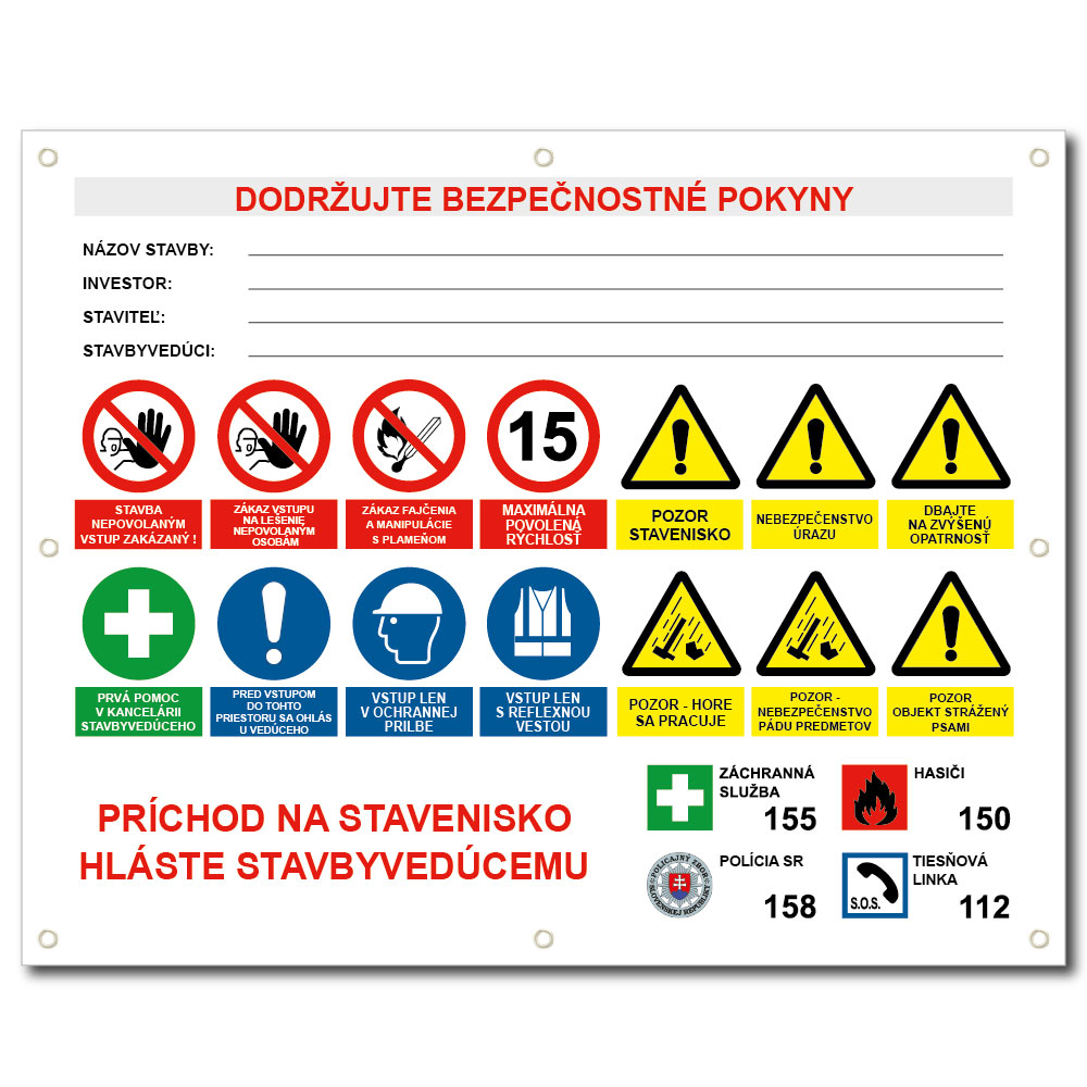Bezpečnostný banner doplníme Vašim logom a podľa priania Vám doplníme aj osobné údaje (stavbyvedúci, investor atď.).