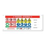 Bezpečnostní banner - POZOR STAVBA Rozměr: 100 x 80 cm Materiál: PVC 520g/m2 s trvanlivostí 5 let Tisk: UV LED s trvanlivostí 3 roky (barevná stálost). Bezpečnostní banner je opatřen kovovými očky min. každých 50 cm k jednoduchému zavěšení. Bezpečnostní