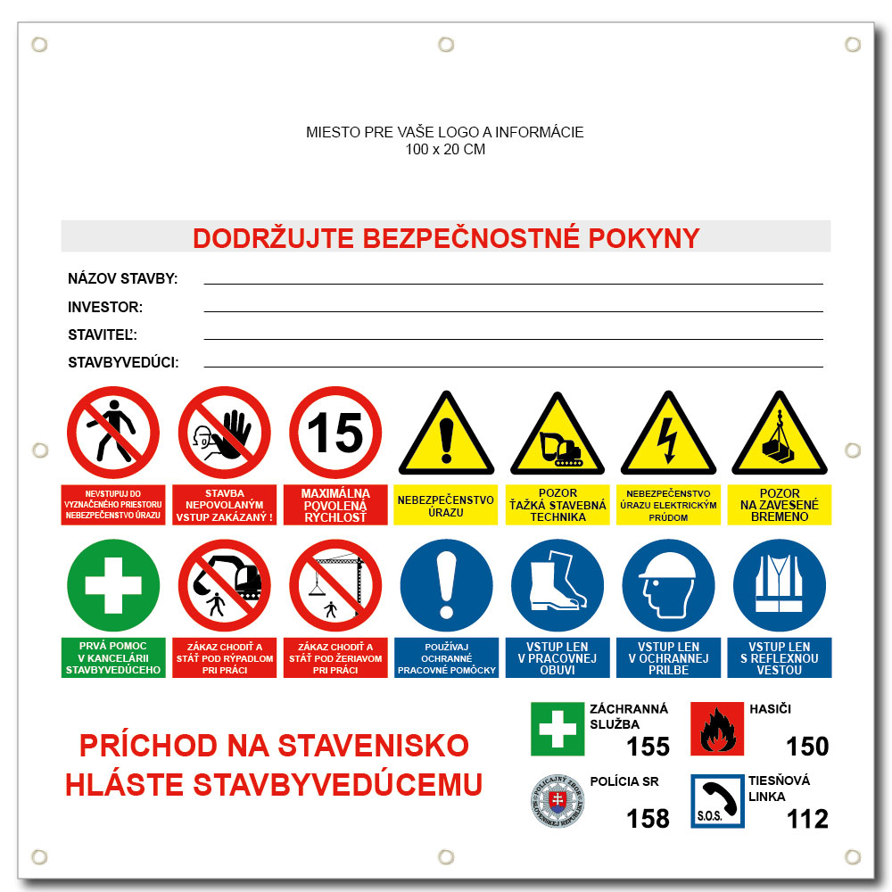 Bezpečnostný banner doplníme Vašim logom a podľa priania Vám doplníme aj osobné údaje (stavbyvedúci, investor atď.).