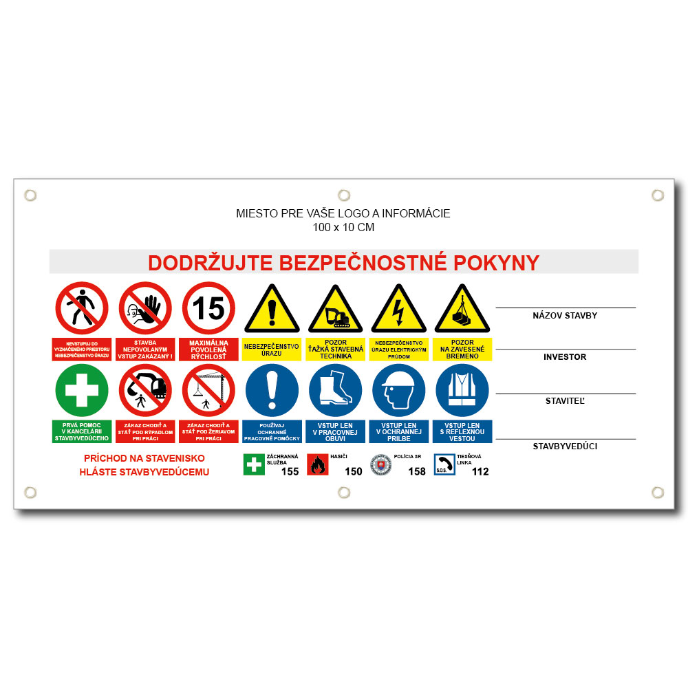 Bezpečnostný banner doplníme Vašim logom a podľa priania Vám doplníme aj osobné údaje (stavbyvedúci, investor atď.).