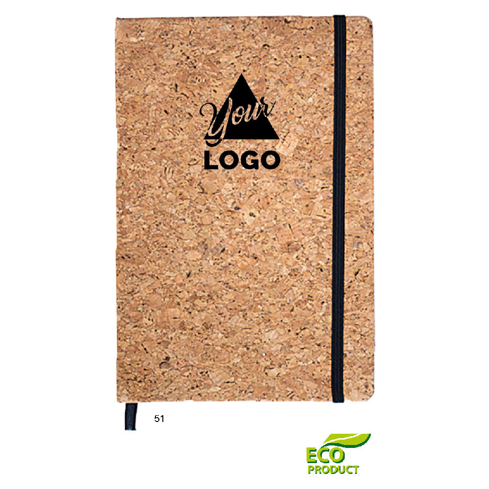 Blok A5 s doskami z prírodného korku s 80 listami a gumičkou. (linkovaný blok), eco friendly.