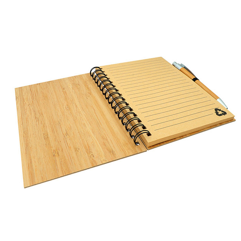 „Blok A5 z prírodného bambusu so špirálou v doskách s bambusovým guličkovým perom, papier 70 g, 70 listov, eco friendly.