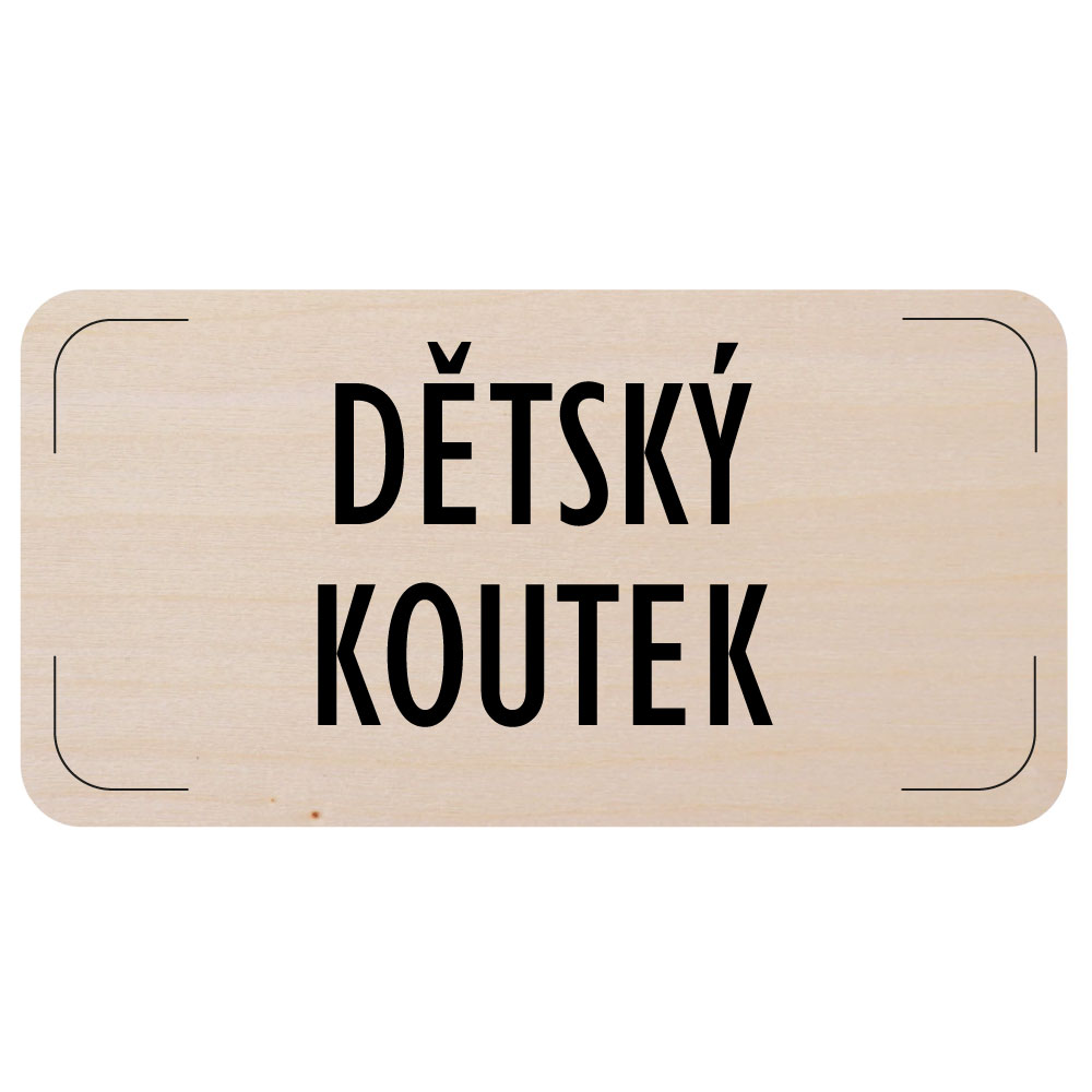 Ceduľka na dvere - Detský kútik, drevená tabuľka, 160 x 80 mm