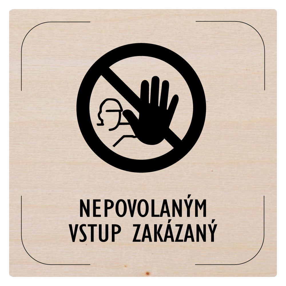 Ceduľka na dvere - Nepovolaným vstup zakázaný - piktogram, drevená tabuľka, 80 x 80 mm