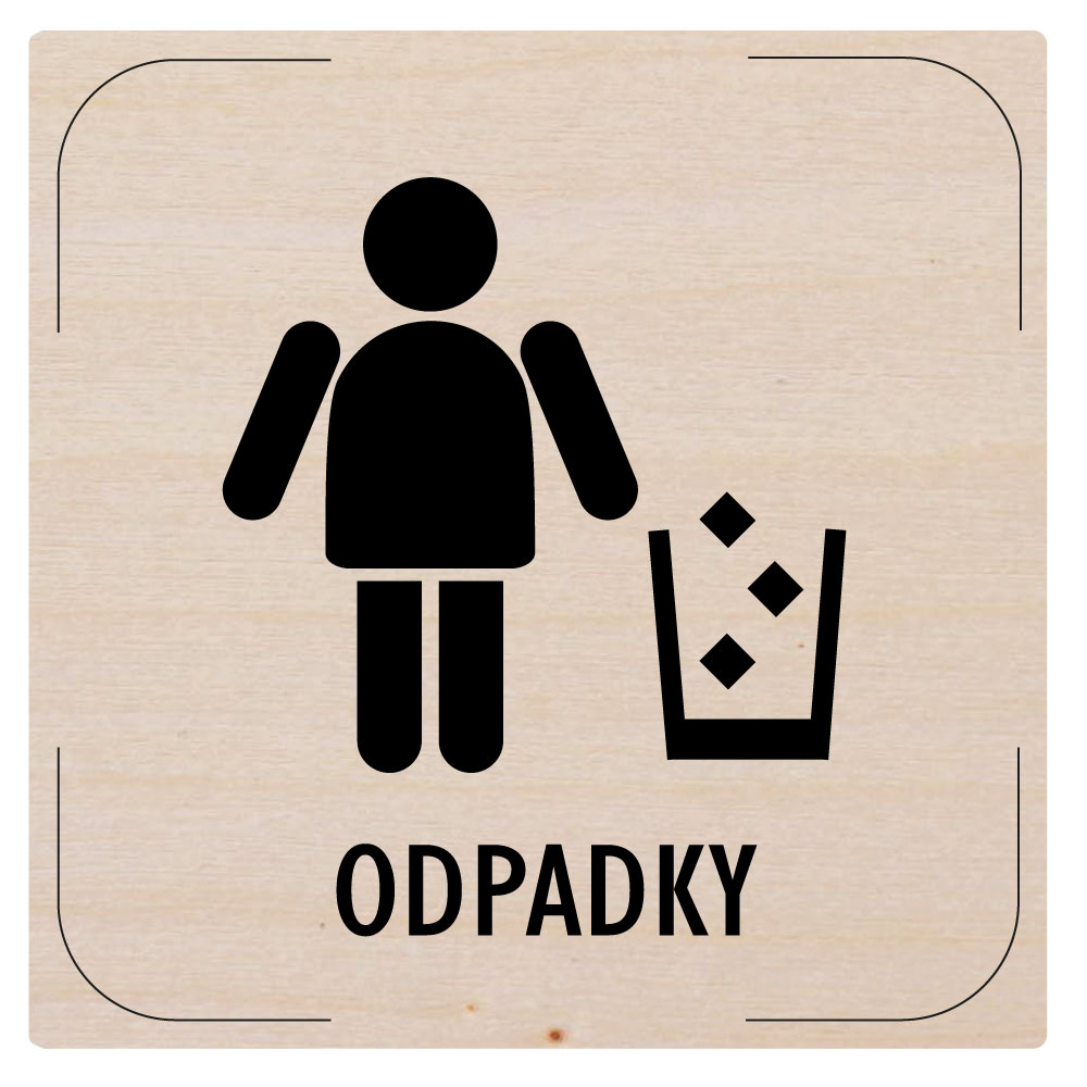 Ceduľka na dvere - Odpadky - piktogram, drevená tabuľka, 80 x 80 mm