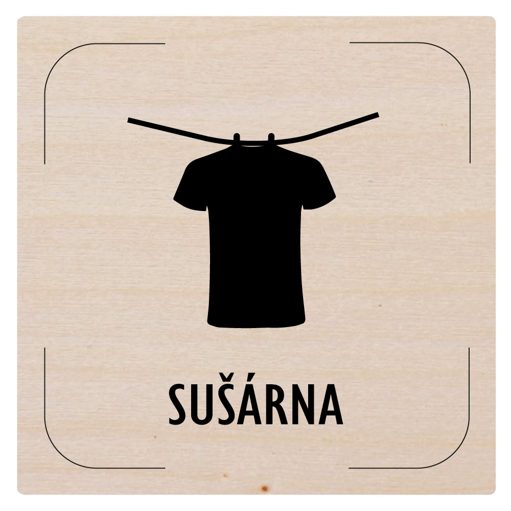 Ceduľka na dvere - Sušiareň - piktogram, drevená tabuľka, 80 x 80 mm