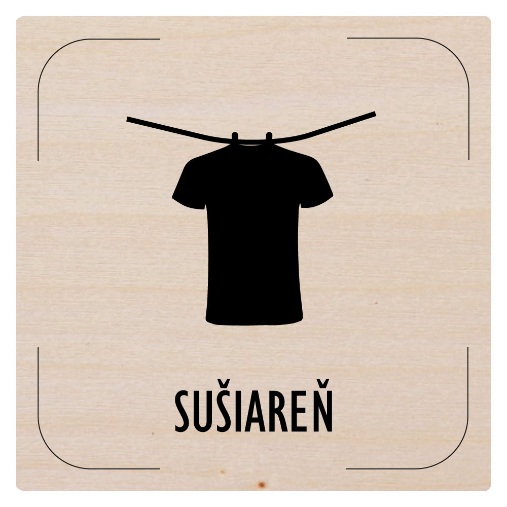 Ceduľka na dvere - Sušiareň - piktogram, drevená tabuľka, 80 x 80 mm