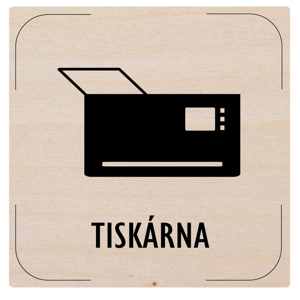 Ceduľka na dvere - Tlačiareň - piktogram, drevená tabuľka, 80 x 80 mm