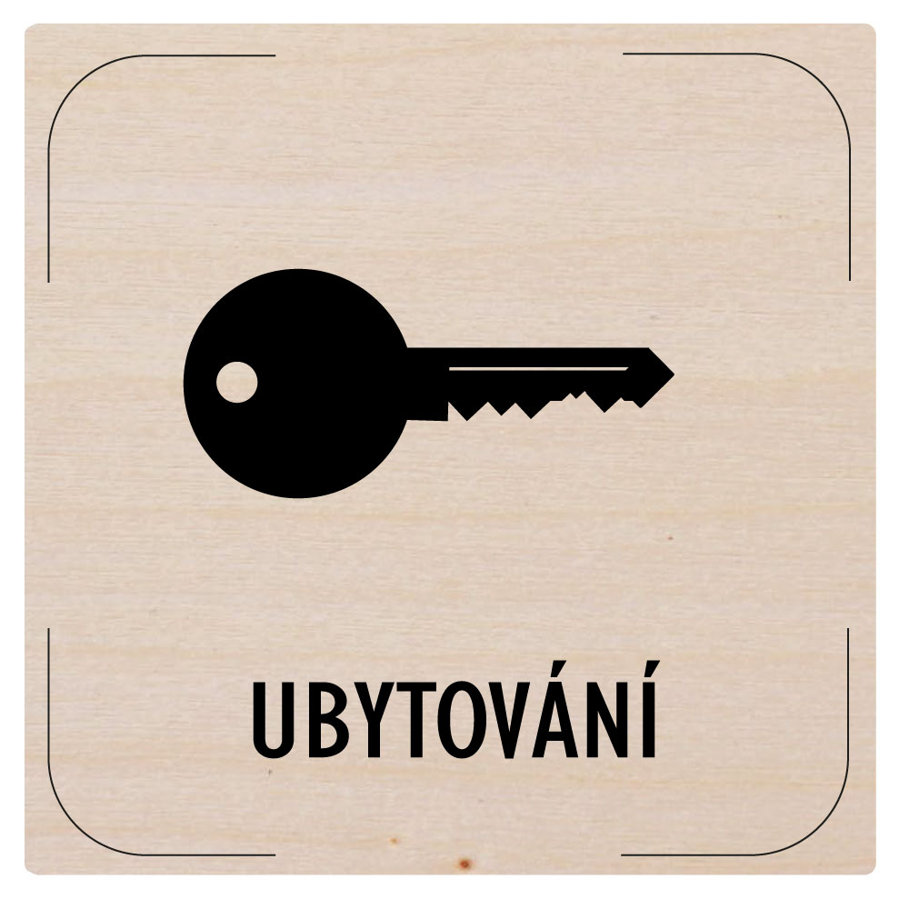 Ceduľka na dvere - Ubytovanie - piktogram, drevená tabuľka, 80 x 80 mm