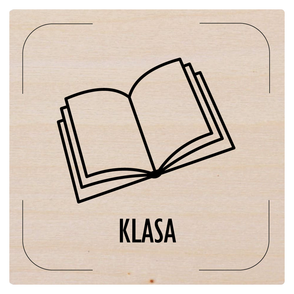 Ceduľka na dvere - Učebňa - piktogram, drevená tabuľka, 80 x 80 mm