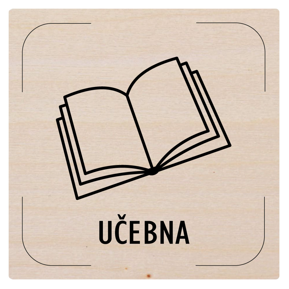 Ceduľka na dvere - Učebňa - piktogram, drevená tabuľka, 80 x 80 mm