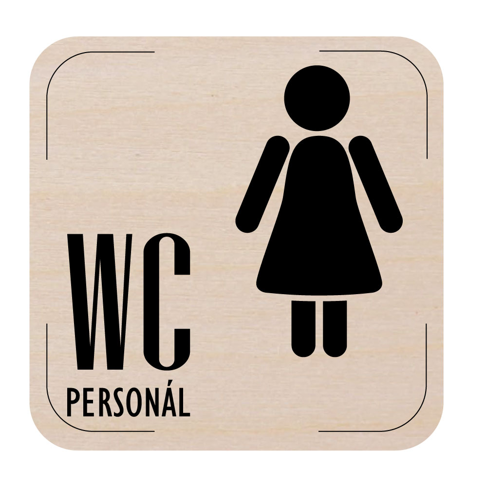 Ceduľka na dvere - WC personál ženy, drevená tabuľka, 80 x 80 mm