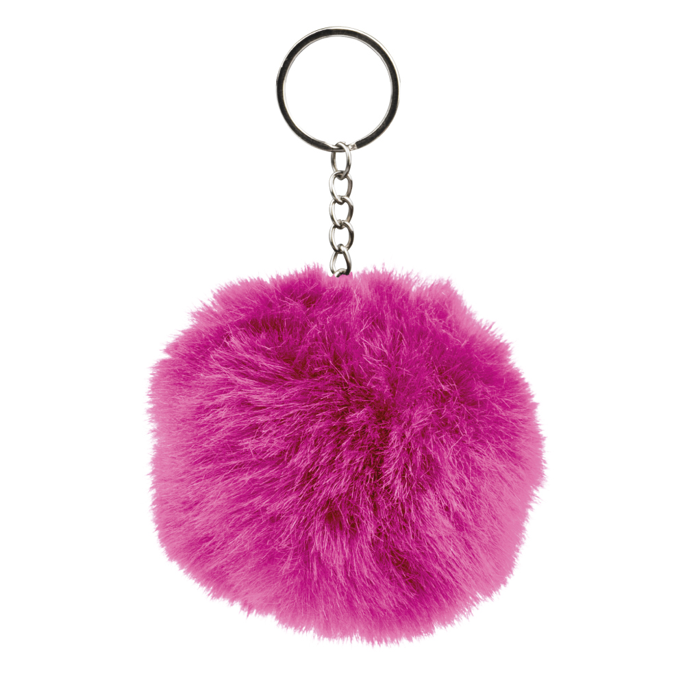 Chlpatý prívesok s karabínkou a krúžkom na kľúče.