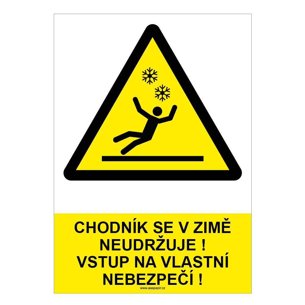 CHODNÍK SE V ZIMĚ NEUDRŽUJE! VSTUP NA VLASTNÍ NEBEZPEČÍ! - bezpečnostní tabulka, plast A4, 2 mm