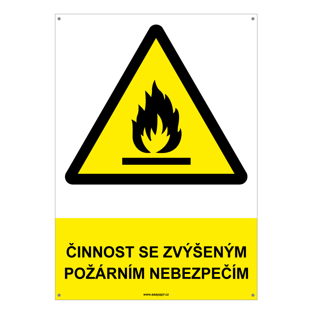ČINNOST SE ZVÝŠENÝM POŽÁRNÍM NEBEZPEČÍM - bezpečnostní tabulka s dírkami, plast A4, 2 mm