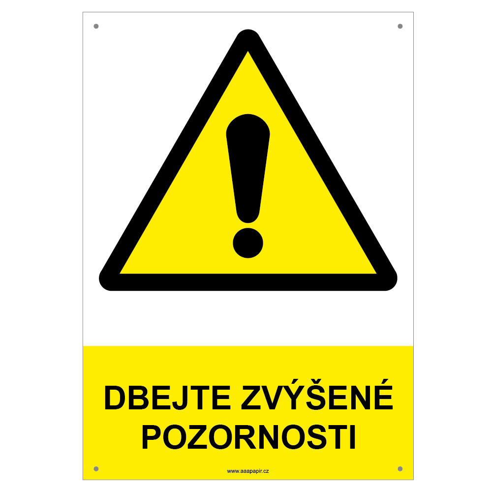 DBEJTE ZVÝŠENÉ POZORNOSTI - bezpečnostní tabulka s dírkami, plast A4, 2 mm