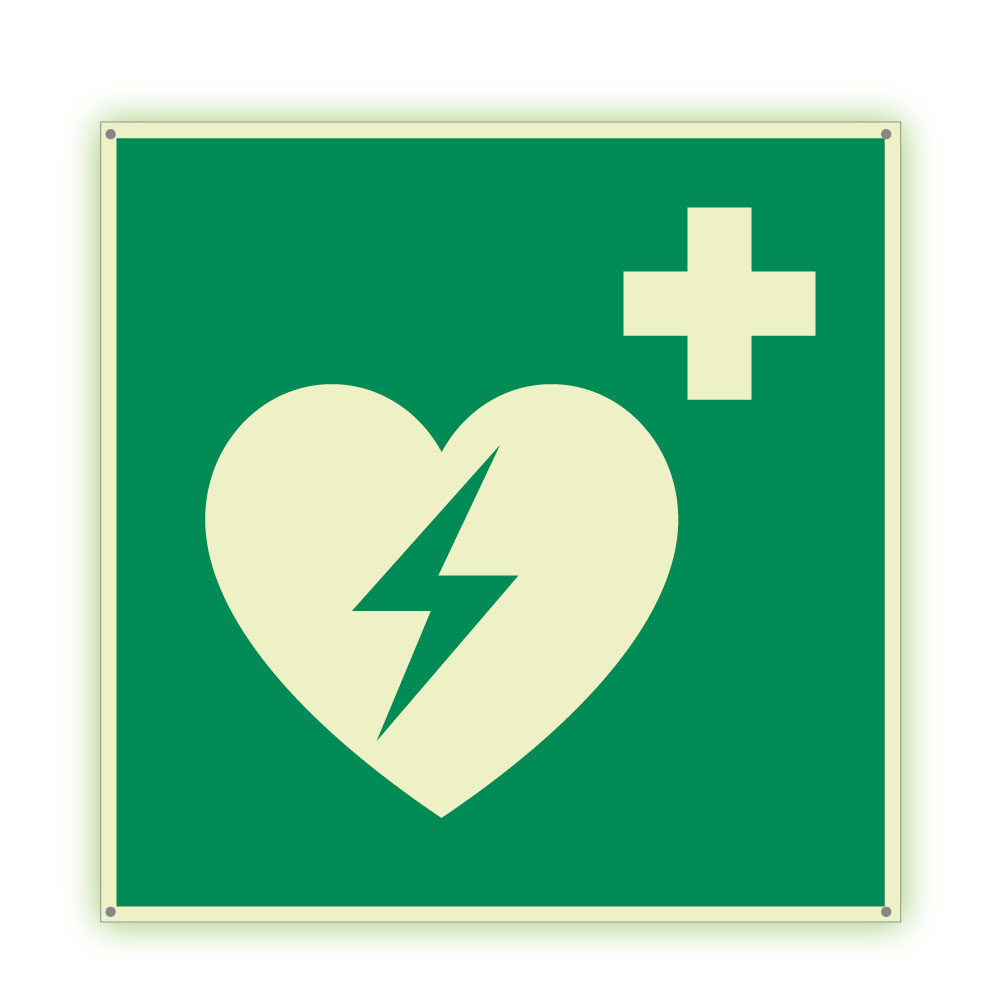 Defibrilátor - fotoluminiscenční tabulka s dírkami, plast 2 mm 300x300 mm