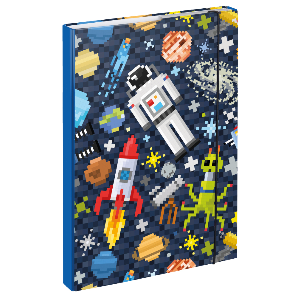 • Ochranné dosky na úschovu zošitov alebo iných dokumentov, s vnútornou klopu proti vypadnutiu, zaistené gumičkou.