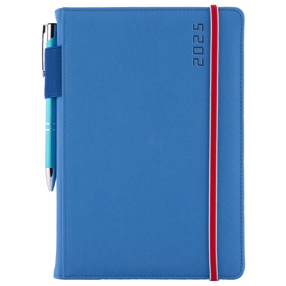 Diár AMOS denný A5 2025 český - modrá/červená gumička