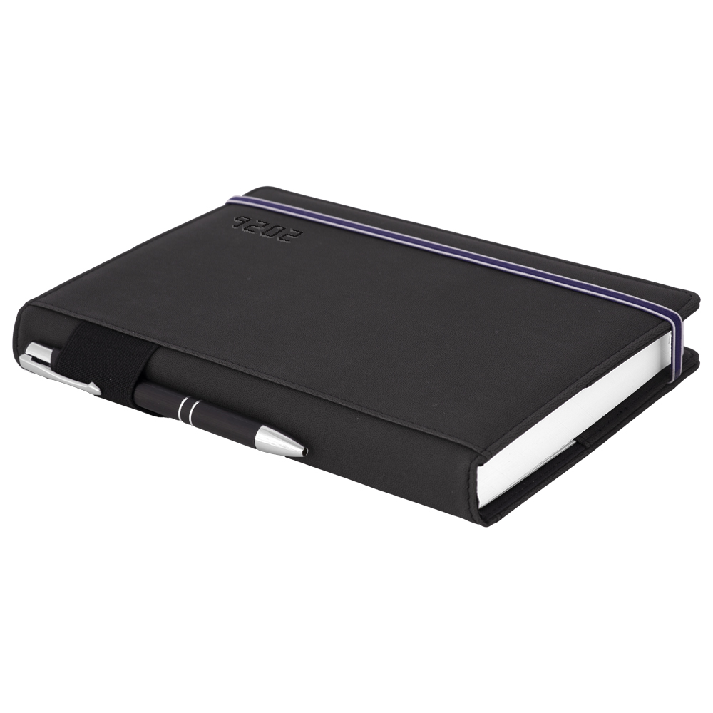 Diár AMOS denný A5 2026 český - čierna/modrá gumička