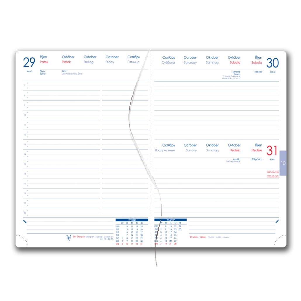 Diár AMOS denný A5 2027 český - modrá/červená gumička