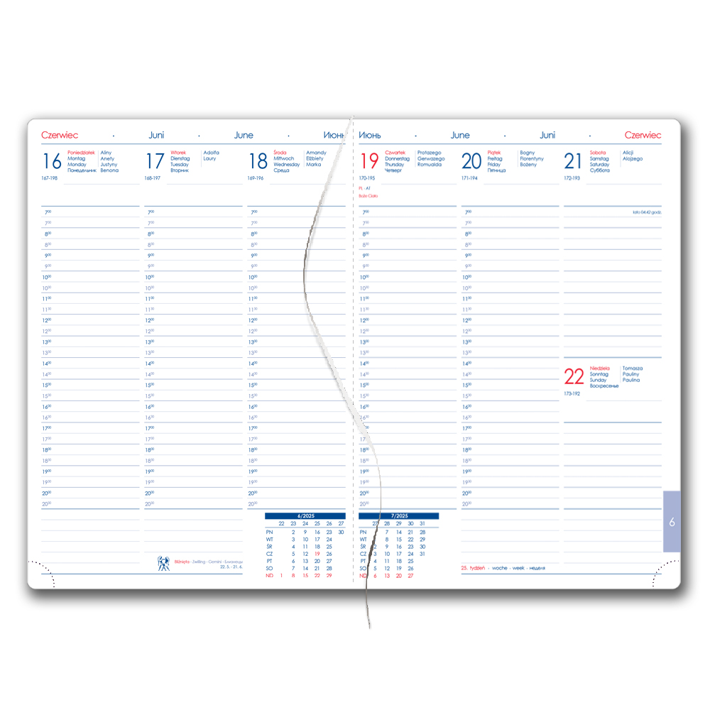 Diár obsahuje: okrúhle odtrhávacie rožky, bielu záložku,