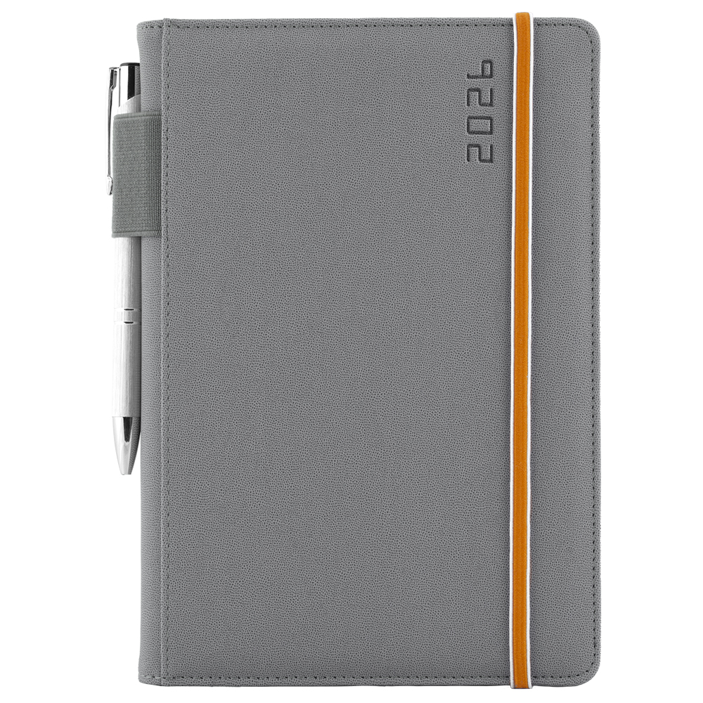 Diár AMOS týždenný špeciál A5 2026 - sivá/oranžová gumička