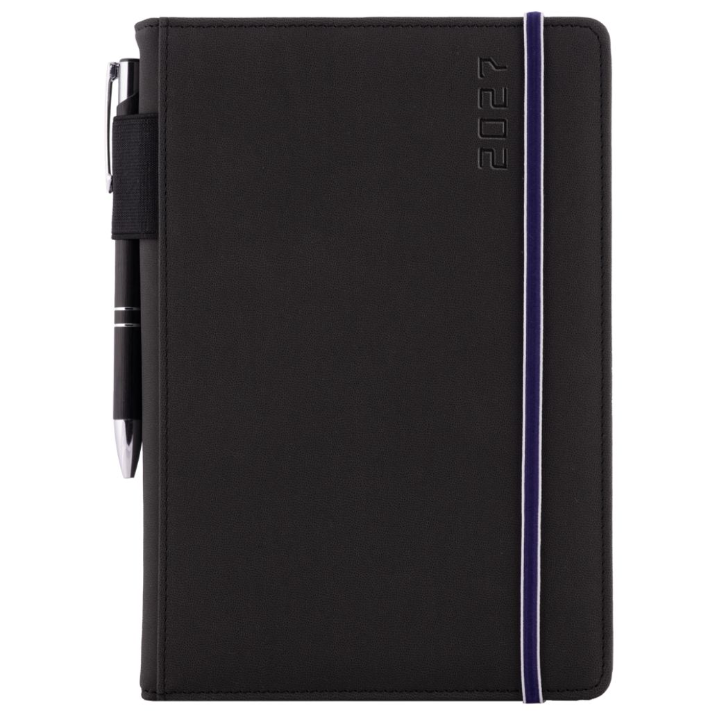 Diár AMOS týždenný špeciál A5 2027 - čierna/modrá gumička