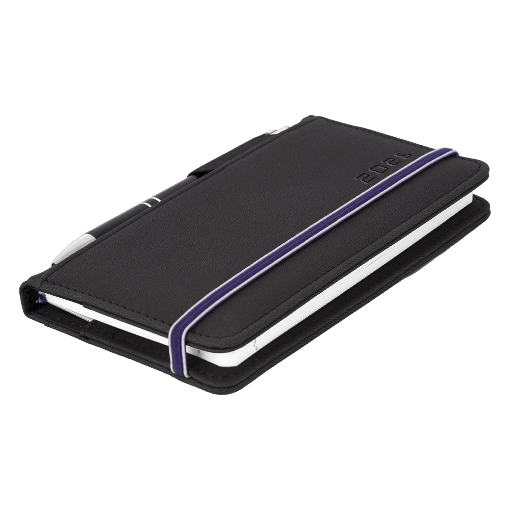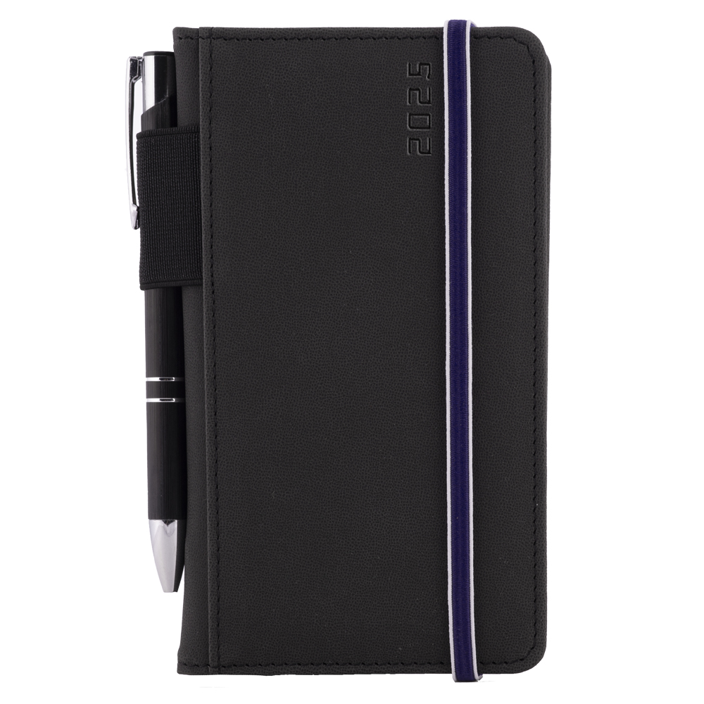 Diár AMOS týždenný vreckový 2025 polský - čierna/modrá gumička