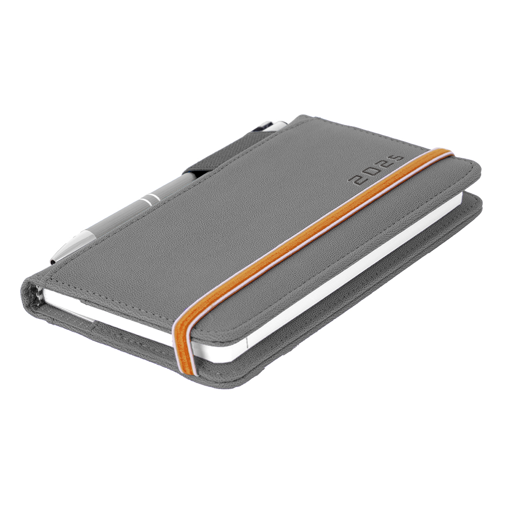 Diár AMOS týždenný vreckový 2025 slovenský - sivá/oranžová gumička
