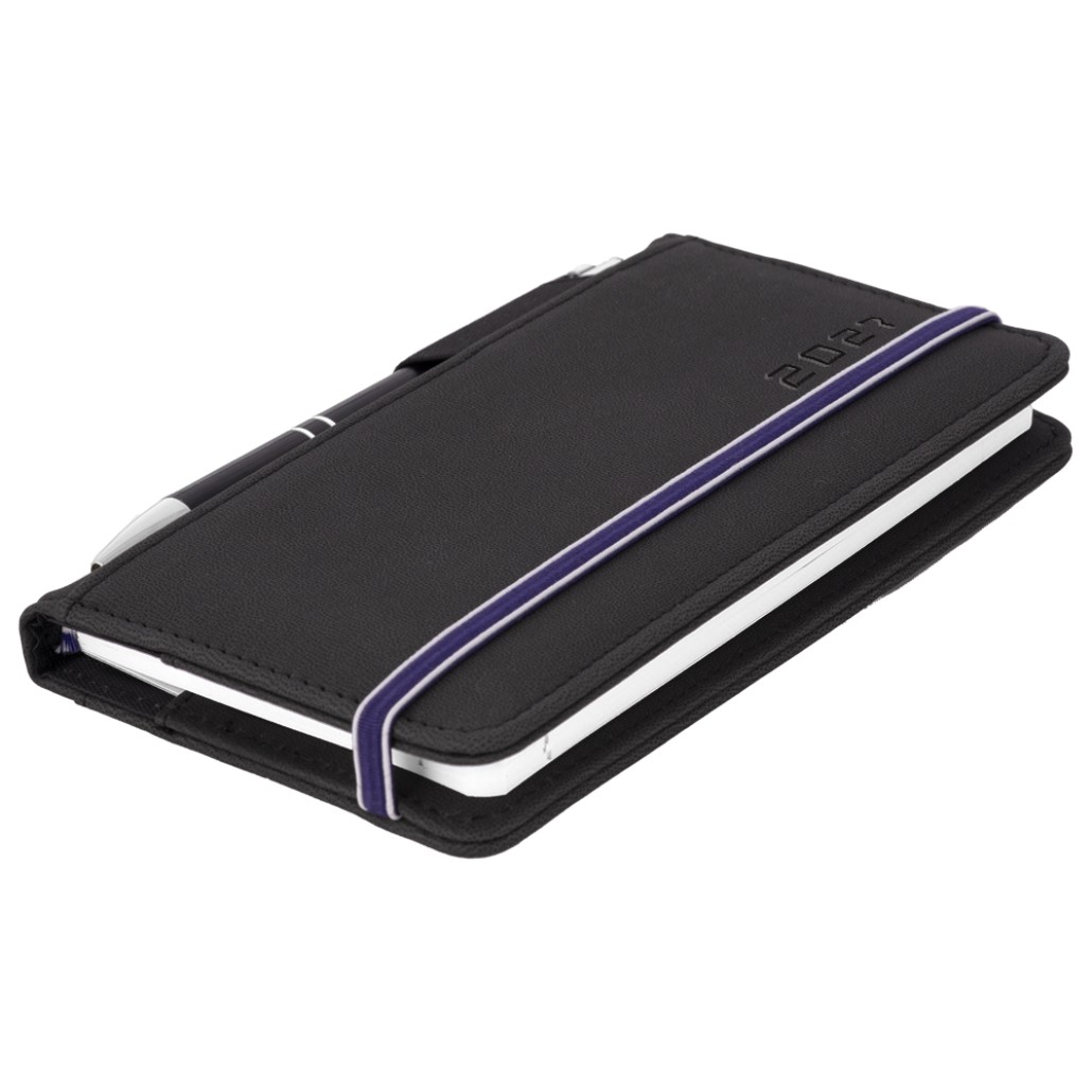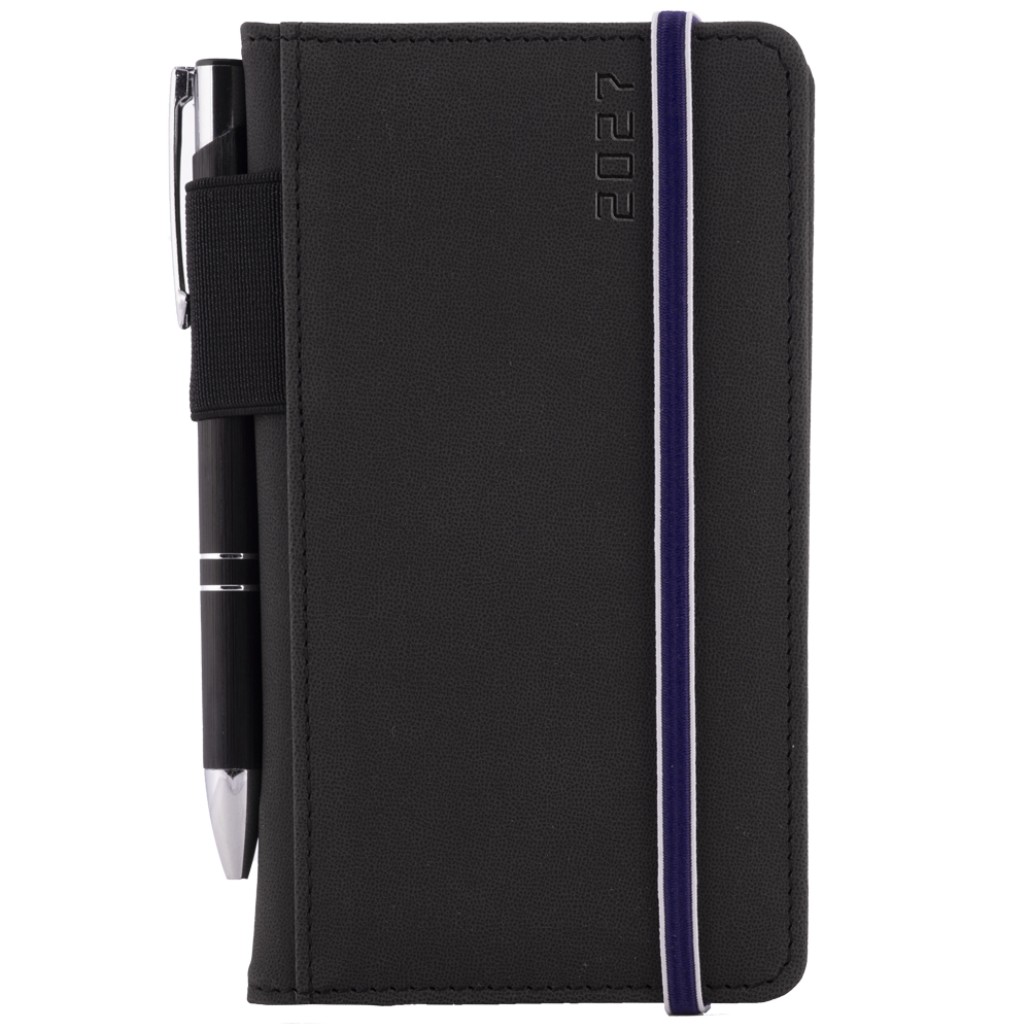 Diár AMOS týždenný vreckový 2027 polský - čierna/modrá gumička