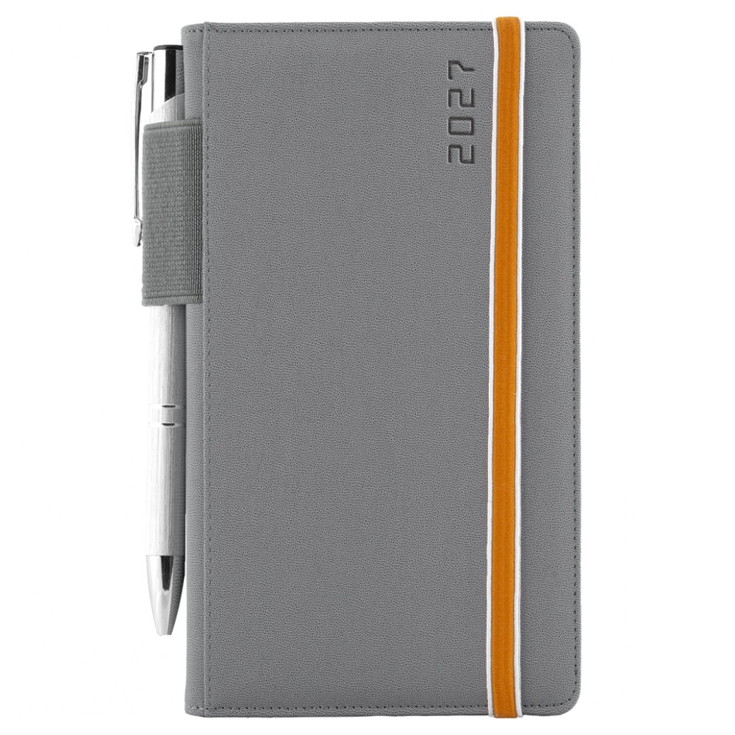 Diár AMOS týždenný vreckový 2027 polský - sivá/oranžová gumička