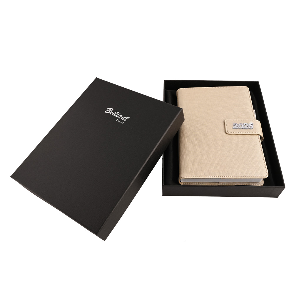 Diár je balený v darčekovej krabičke vystlané saténom.