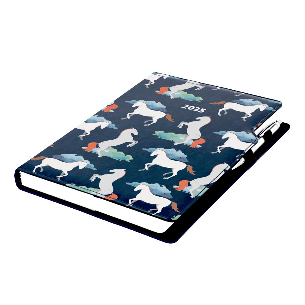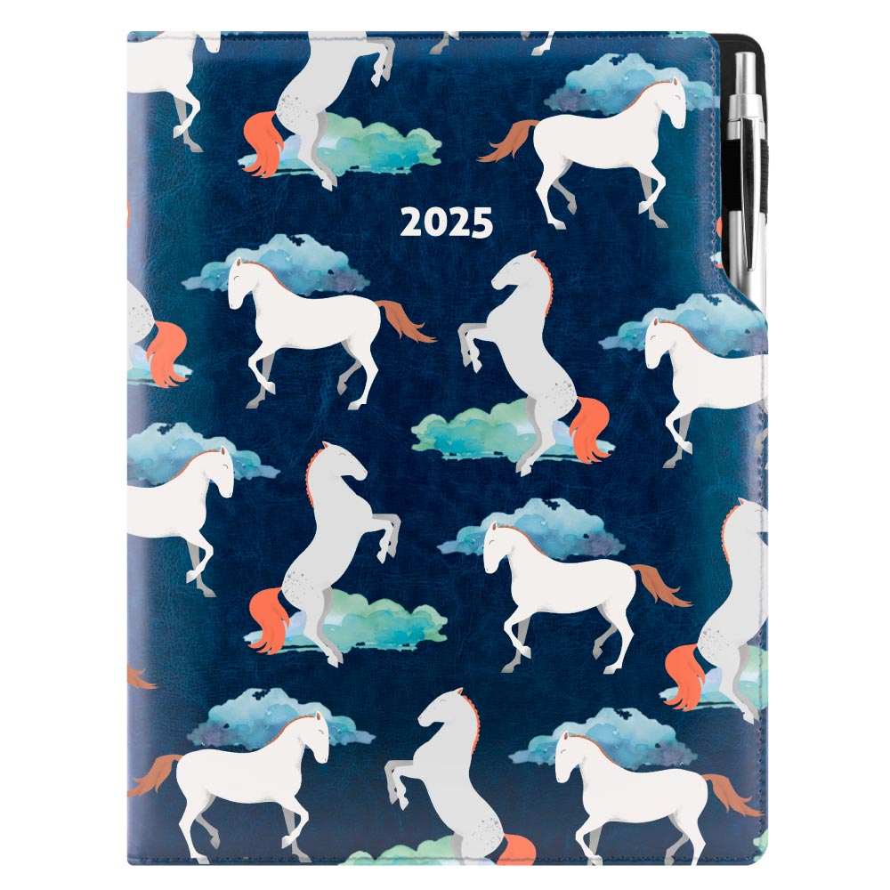 Diár obsahuje: okrúhle odtrhávcie rožky, bielu záložku a pero