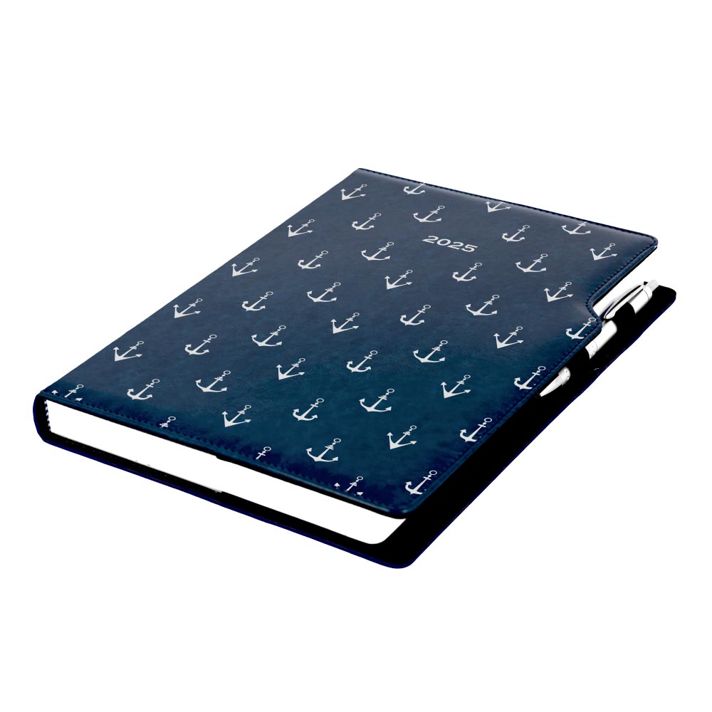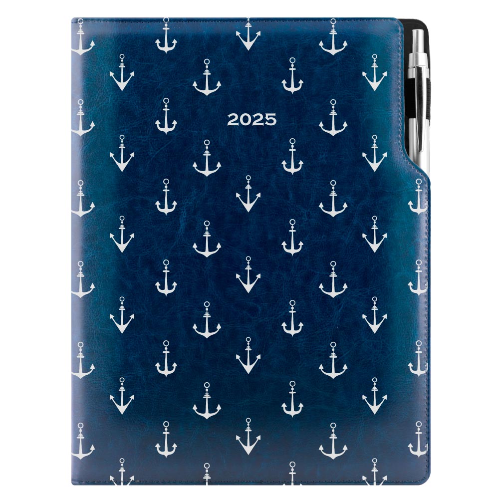 Diár DESIGN denný A4 2025 - modrá - námorník - kotvy