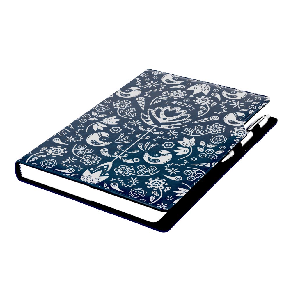 Diár DESIGN denný A4 2025 poľský - modrá - Folk