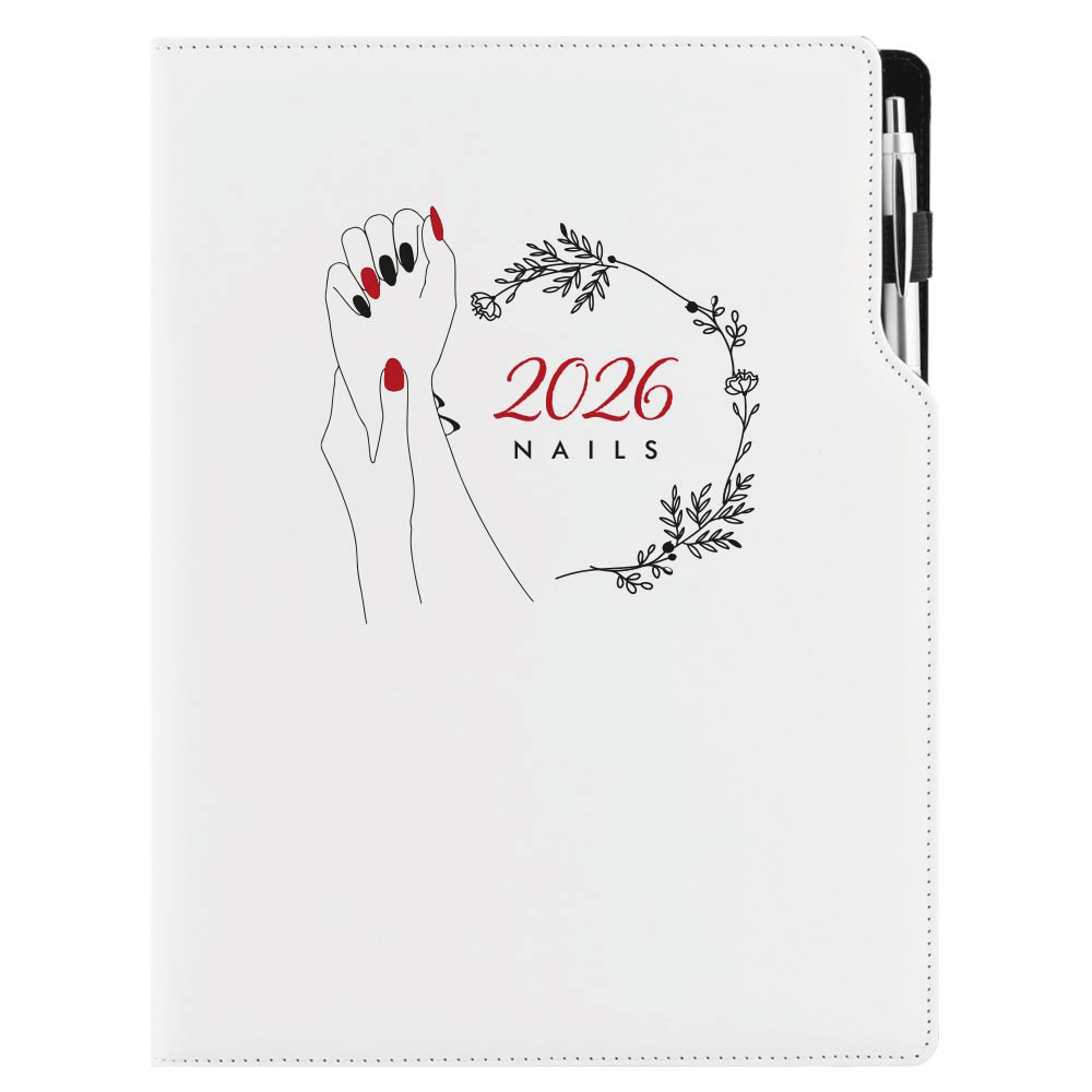 Diár obsahuje: okrúhle odtrhávcie rožky, bielu záložku a pero