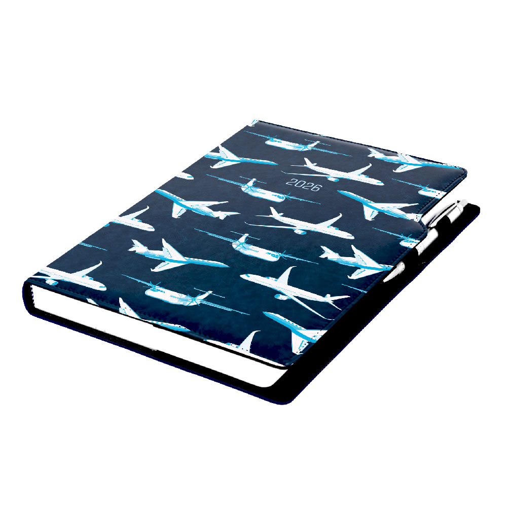 Diár DESIGN denný A4 2026 polský - modrá - lietadlá
