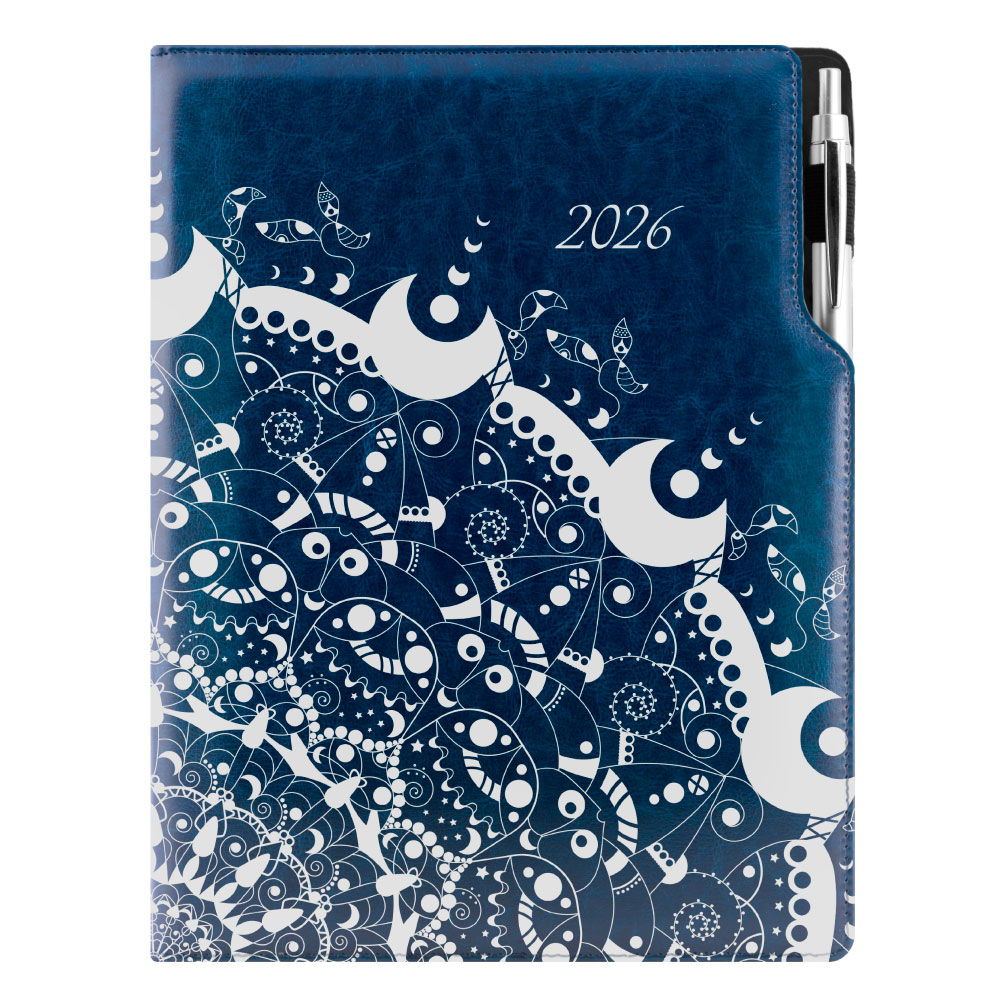Diár DESIGN denný A4 2026 poľský - modrý - ornament