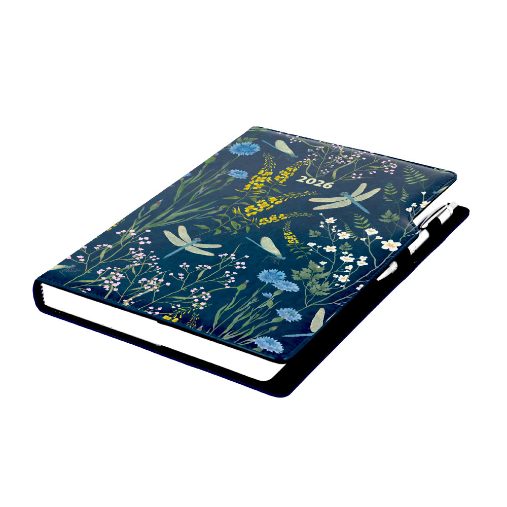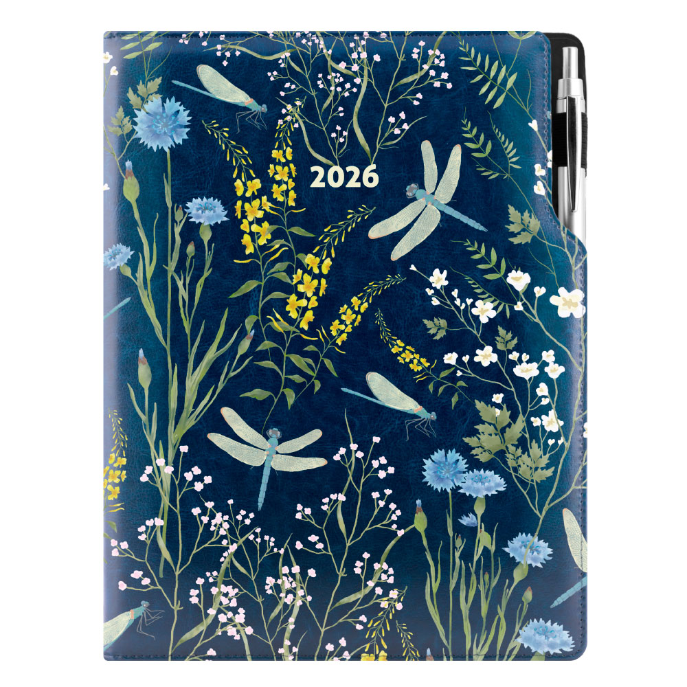 Diár DESIGN denný A4 2026 poľský - modrý - vážky