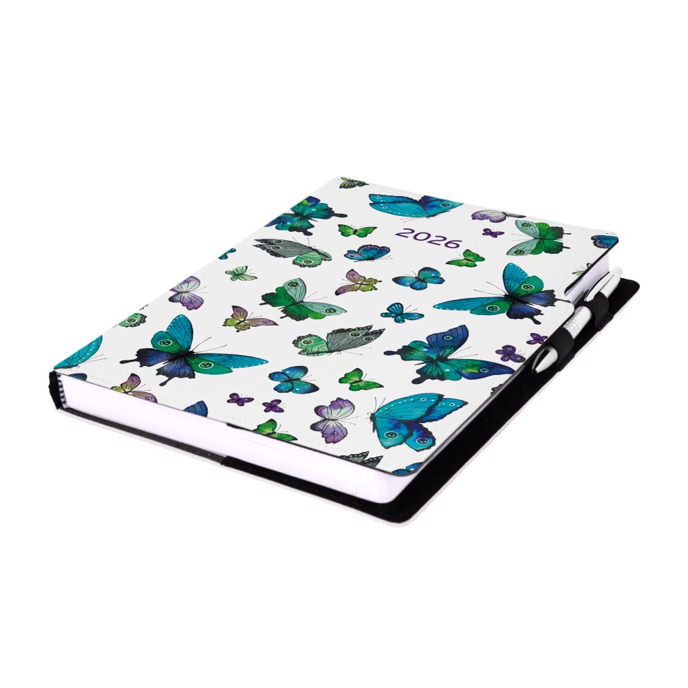 Diár DESIGN denný A4 2026 poľský - Motýle modré