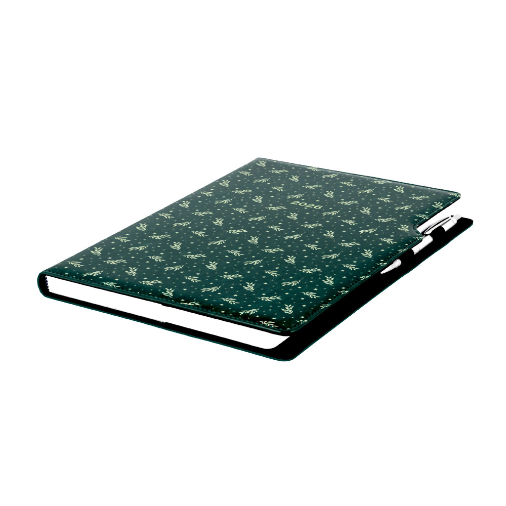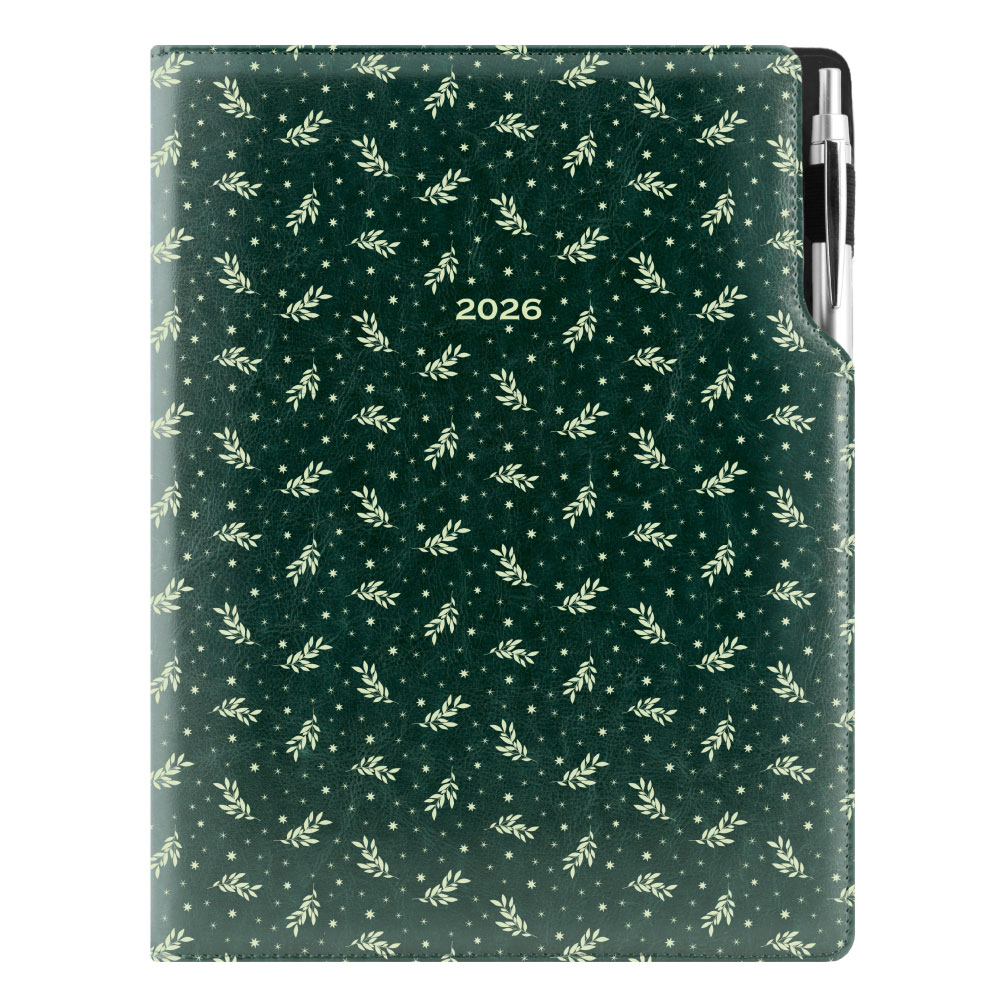 Diár DESIGN denný A4 2026 poľský - zelená - vetvičky