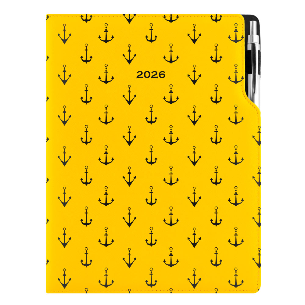 Diár DESIGN denný A4 2026 poľský - žltá - námorník - kotvy