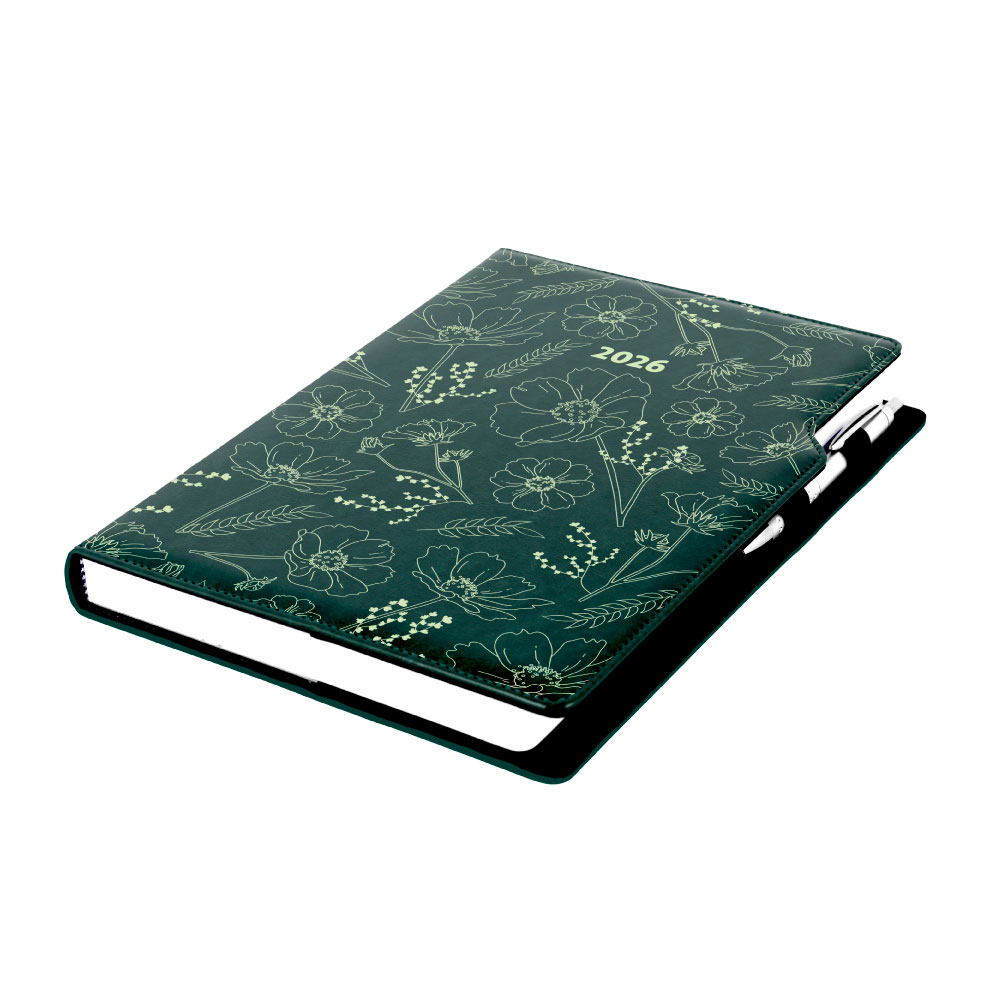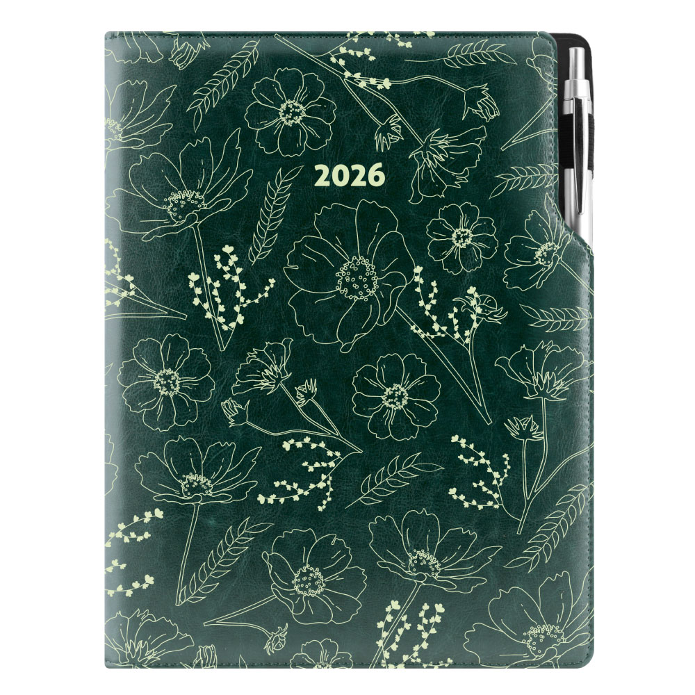 Diár DESIGN denný A4 2026 - zelená - kvety
