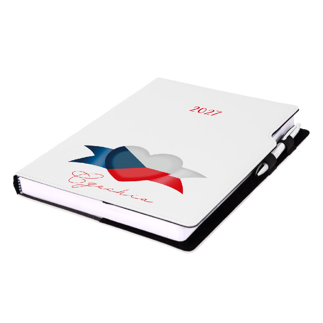 Diár DESIGN denný A4 2027 - biela - Česko - vlajka