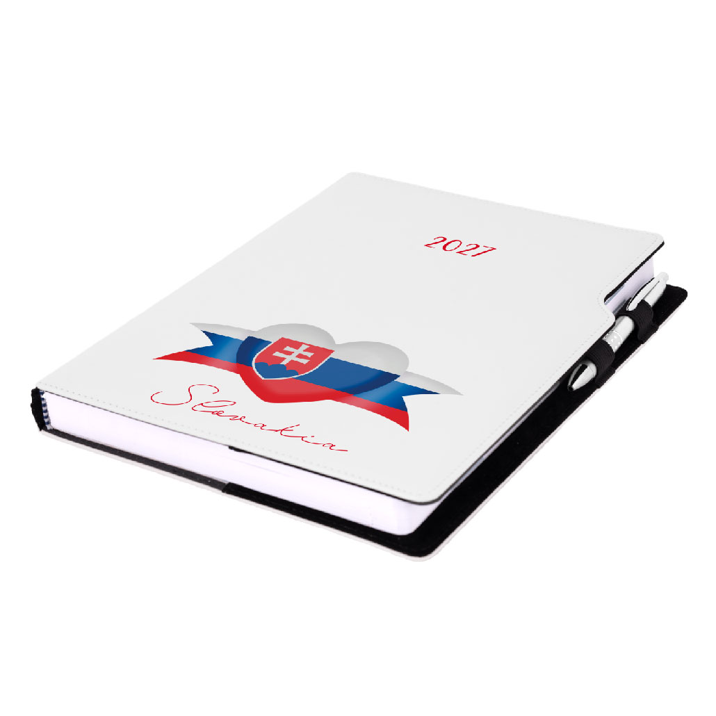 Diár DESIGN denný A4 2027 - biela - Slovensko - vlajka