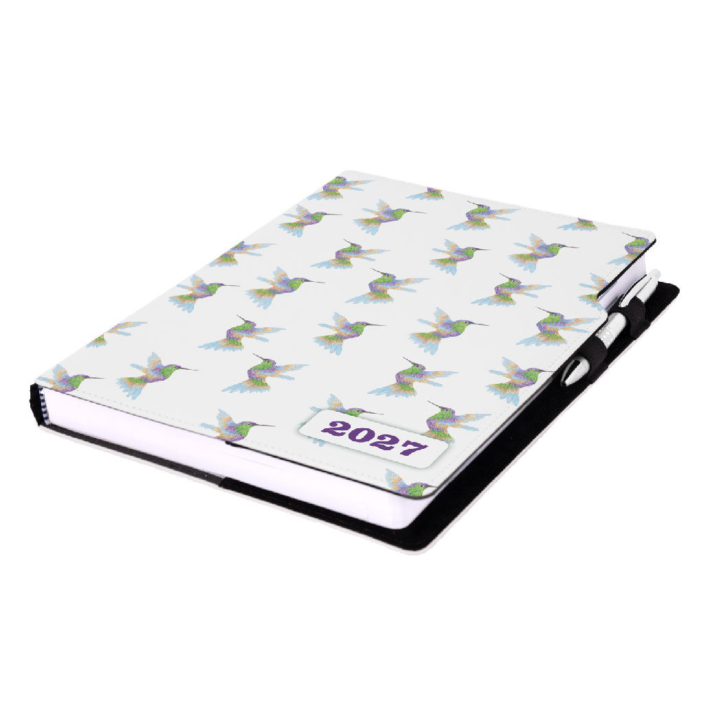 Diár obsahuje: okrúhle odtrhávcie rožky, bielu záložku a pero